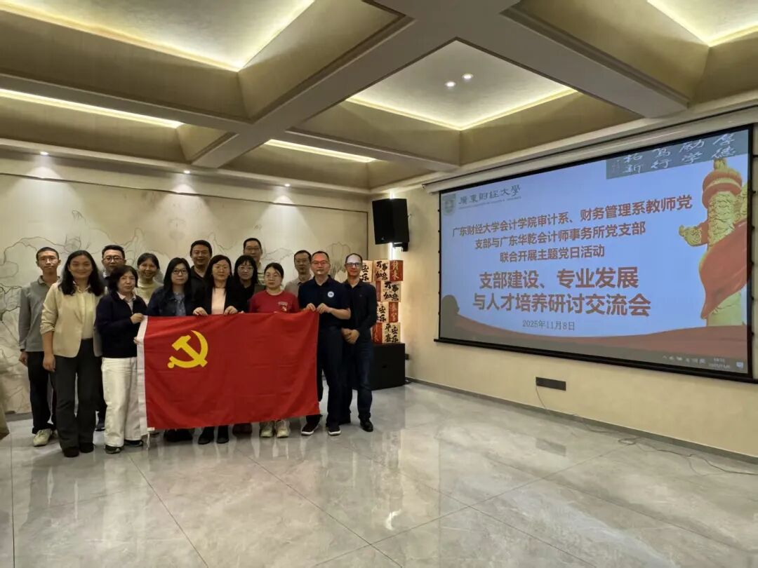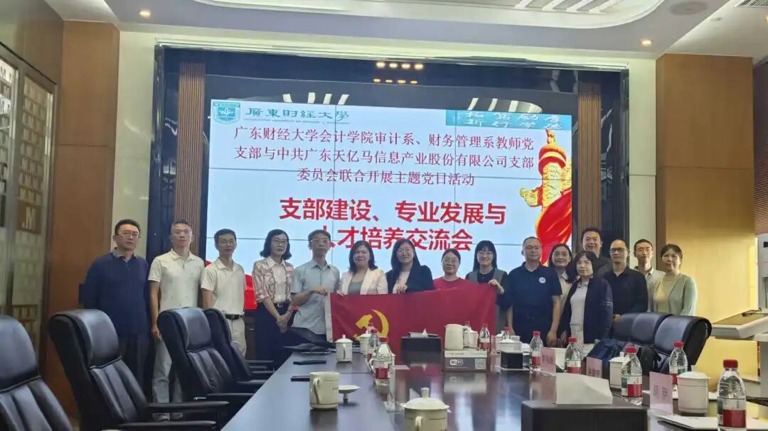 为深入推进党建与业务深度融合,拓展校企协同育人新路径,广东财经大学会计学院审计系教师党支部、财务管理系教师党支部近期先后联合广东天亿马信息产业股份有限公司党支部、广东华乾会计师事务所党支部联合开展主题党日活动。学院工会主席施赟、审计学系主任曹丽梅、财务管理系教师党支部书记董艳、副书记陈勇及教师党员代表等11人参与了本次活动。
