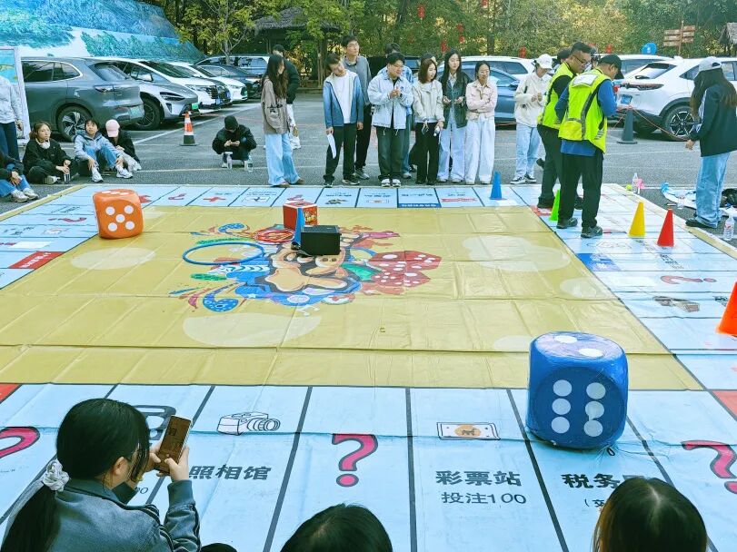经过短暂的休整与能量补充,下午的真人大富翁活动如期而至。教练先带领全体同学进行热身运动,激活状态,为后续的游戏做好准备。随后,教练详细介绍了游戏规则:各团队在模拟的“财富赛道”上前行,通过掷骰子决定前进步数,途中既有机遇也有挑战——完成指定任务可赢得额外资金,未完成则要扣除一定资金,最终以规定时间内积累的金币数量与前进距离评定成绩。