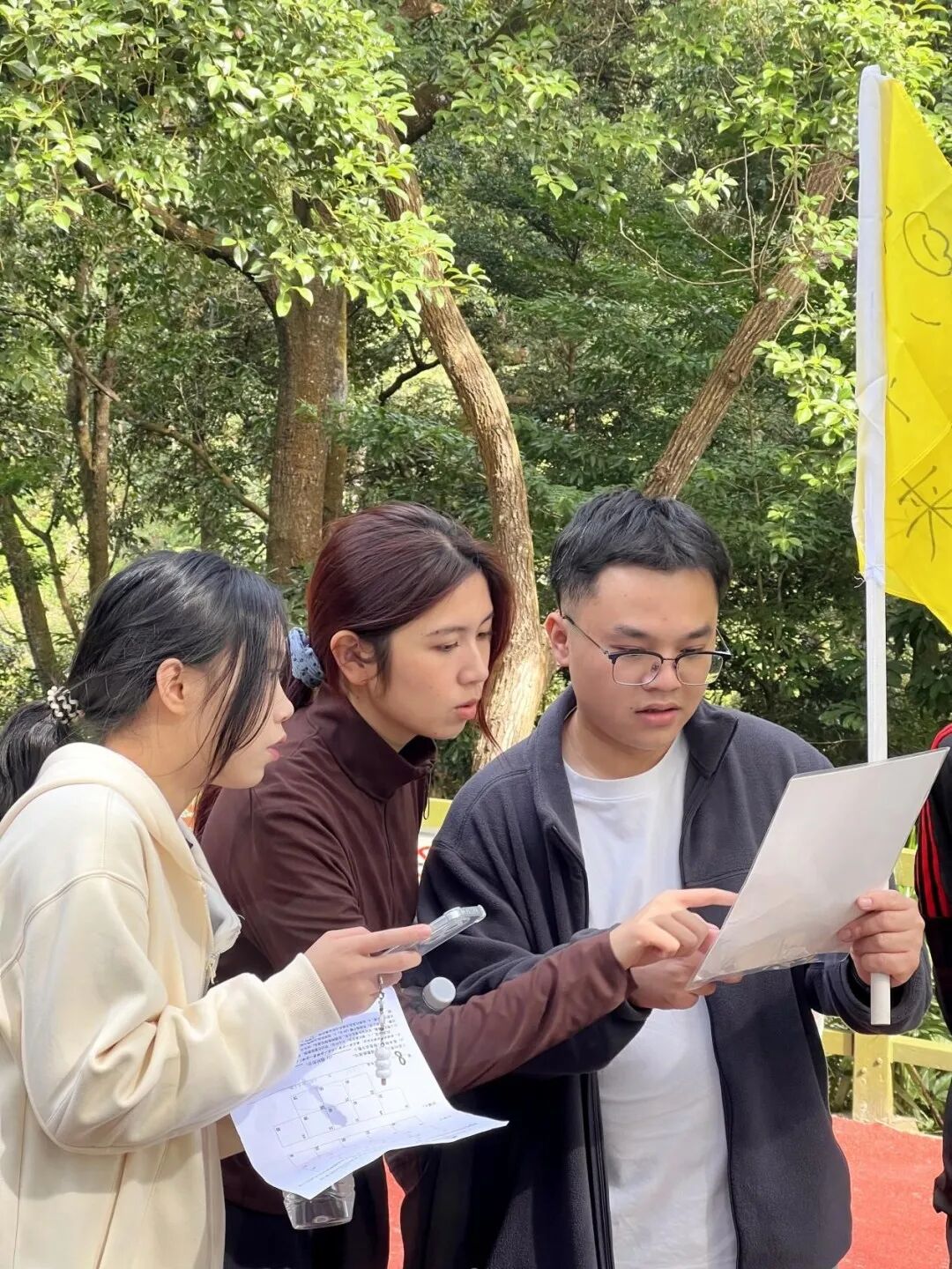 规则讲解完毕,各小组迅速召开“战术研讨会”,有人负责精准解读地图,规划最优路线;有人负责分配各成员搜索区域,实现效率最大化;有人则负责统筹时间,把控行进节奏。随着教练一声令下,10支队伍如离弦之箭般出发,同学们穿梭在茂密的山林间,越过陡峭的山坡,走过蜿蜒的道路,每找到一个打卡点,都忍不住欢呼雀跃。过程中,遇到复杂地形时,队员们相互搀扶、携手同行;发现打卡点隐蔽时,大家群策群力、共同搜寻。这场山野间的较量,不仅考验着大家的方向感与体能,更锤炼了团队的规划能力与协作意识。