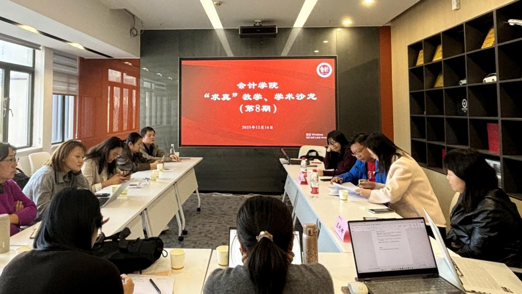 为推动教学创新,培养一流人才,12月16日会计学院在立德楼521举办“求真” 教学学术沙龙(第八期)。教务部部长陈建林、学院副院长王利娜、工会主席施赟出席本次沙龙,第六届全国教师教学创新大赛参赛教师张建平、滕明明、郑培培及学院多名青年教师共同参与,围绕教学创新与备赛策略展开深入交流。