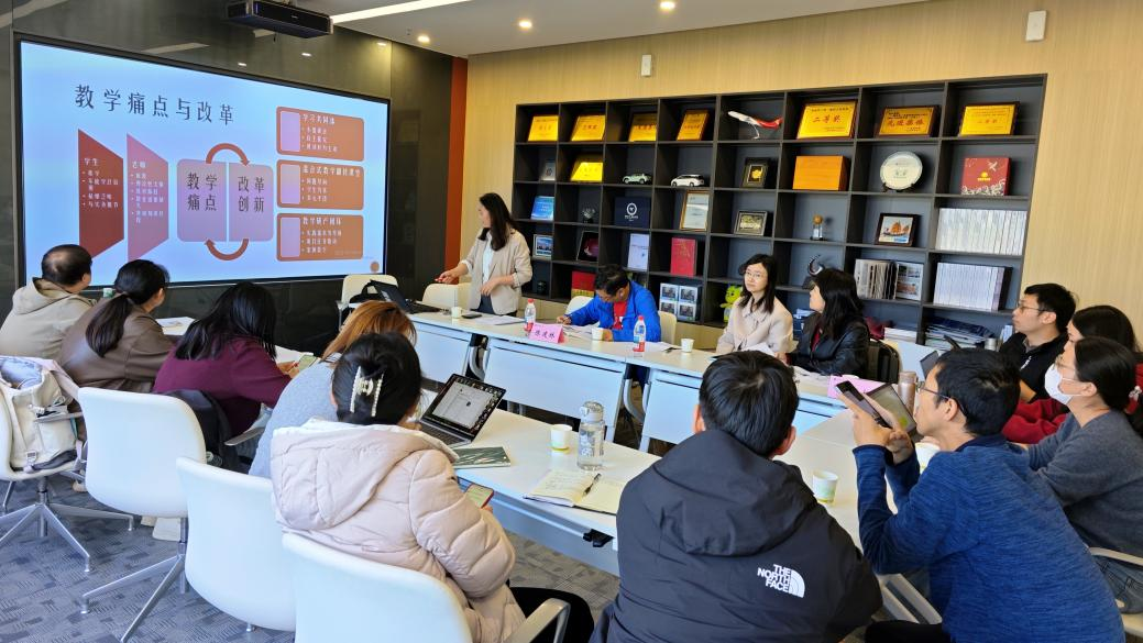 随后,与会教师围绕教学问题识别、创新思路形成、创新点凝练等核心议题展开深度研讨。陈建林强调,要精准把握课程教学中的痛点,立足学科特色凝练创新亮点,强化课程创新与教学改革的内在关联;参赛课程应打造具有辨识度的“一招鲜”,突出差异化的创新特质,给评审留下深刻印象。王利娜提出,创新不必追求面面俱到,关键在于聚焦专业课程的核心教学问题,提出切实可行的创新举措,避免泛而不精。
