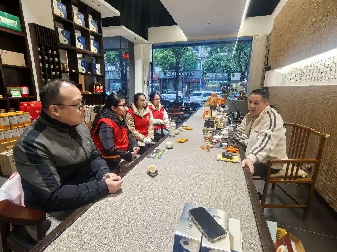 在河源市紫金县金丰号农业有限公司,实践团围绕紫金蝉茶产业发展与品牌建设开展调研交流,访问了广东省人大代表、紫金县茶叶协会会长、虫咬蝉茶创始人张建中。该公司负责人详细介绍了当地在紫金蝉茶种植管理、工艺创新、市场推广及茶文旅融合等方面的经验和成果。实践团结合学科专业优势,就优化产品质量标准体系、加强品牌数字化营销、拓展深加工产业链等提出建设性意见。本次调研为深化茶产业经济与乡村振兴实践研究、强化双方在特色农业品牌化与可持续发展方面的合作奠定了基础。
