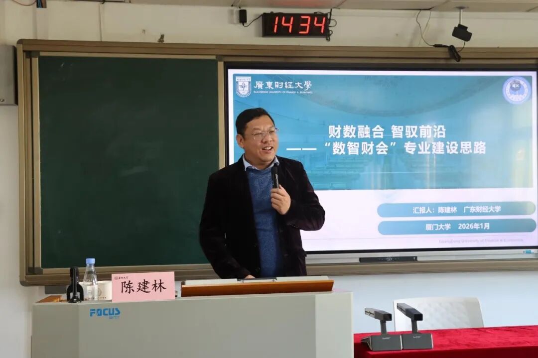 1月23日,陈建林教授应邀到厦门大学作题为《财数融合,智驭前沿——数智财会专业建设思路》的讲座。来自云南、福建等全国多地高校的经管类教师参加交流。陈建林教授围绕“财数融合”与数智技术赋能会计教育的关键环节,分享了我院在培养目标凝练、课程体系重构、实践教学与产教协同等方面的建设思路与阶段性经验,重点阐释了“智能+财会”专业建设的路径设计与落地策略,引发与会教师深入讨论。