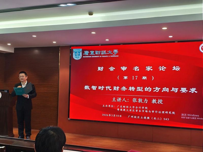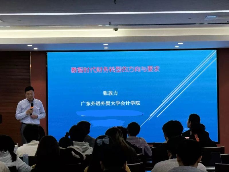 3月10日下午,我院主办的第十七期“财会审名家论坛”在立德楼543会议室举行。广东外语外贸大学会计学院二级教授、博士生导师张敦力莅临学院,以“数智时代财务转型的方向与要求”为题作专题报告。我院副院长杨志强主持论坛,张建平、彭妙薇、廖友亮、郑培培等学院80余名师生参加了本次活动。