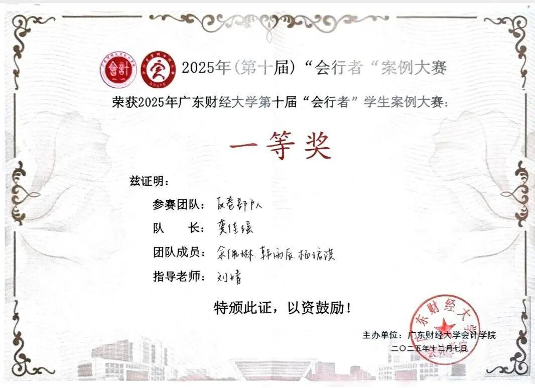团队成员曾获“会行者”案例分析大赛特等奖、双百校级重点立项。
