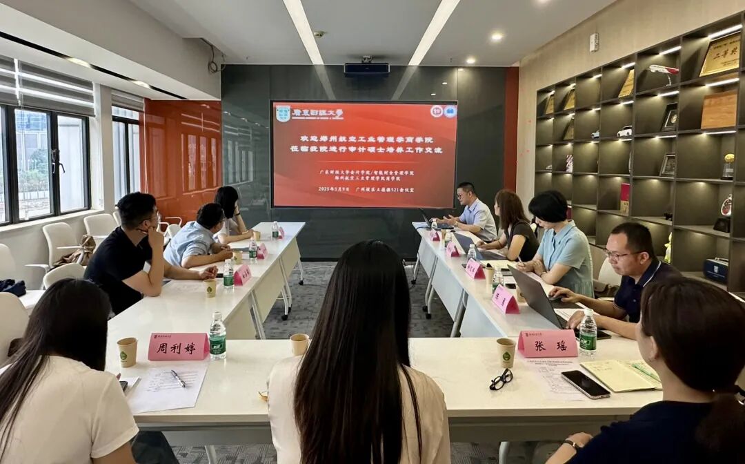 5月9日下午,郑州航空工业管理学院商学院副院长周雪峰、学科与研究生培养办公室主任黄莺、研究生辅导员白占俊一行到会计学院/智能财会管理学院调研交流,广东财经大学会计学院/智能财会管理学院副院长杨志强、学科建设办公室主任冯晓丽及副主任徐汇丰、专业学位教育办公室副主任陈勇、学科秘书张瑶、研究生辅导员周利婷、本科生辅导员杨晨一参加交流座谈会。