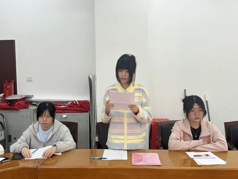 会议第二项是讨论接收预备党员。首先由张佳乐、李俐莹、李泳怡3名发展对象依次围绕个人情况、思想发展、入党动机以及学习、工作、生活等方面向大会详细汇报自己的情况。每位发展对象都向党组织表达了自己的决心和感想,表示在今后的学习工作生活中将以更高标准严格要求自己,积极践行党的宗旨,努力成为一名合格的共产党员。接着入党介绍人黄竞同志对3位发展对象进行了介绍,综合他们在考察培养期间的表现情况,肯定了他们在此期间的思想情况和工作情况,认为她们已基本符合入党条件。孙诚志和谭泳言同志向支部大会报告了3名发展对象的考察和政治审查情况。大会对是否同意接收发展对象为预备党员采用无记名投票方式进行表决,大会一致同意接收张佳乐、李俐莹、李泳怡三名同学为中共预备党员。