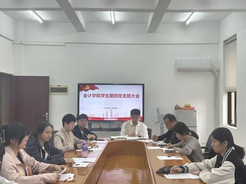 为了加强党组织建设,进一步壮大学生党员队伍,提高党支部的活力和创造力,2024年11月22日下午,会计学院学生第四党支部在佛山校区厚德楼423会议室召开接收预备党员支部大会。会议由支部书记黄竞主持,辅导员张妮、曹炜、赵雅慧、欧定东、汪雨亭、学生第四党支部全体党员和发展对象参会。