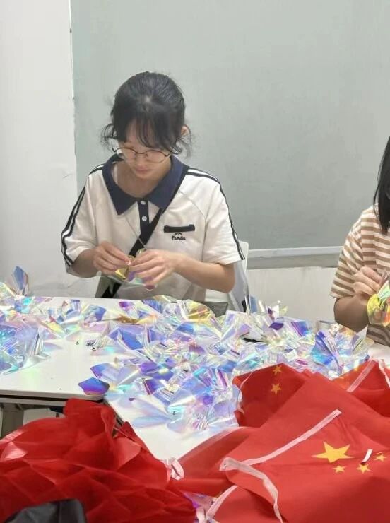 活动中,同学们热情洋溢,以笔墨书写对联,字字句句满载对祖国深情厚意。投壶游戏中,欢声笑语不断,古老智慧在指尖跳跃。书签祝福、国风拼图、灯笼与漆扇制作,每一处都闪耀着创意与传统之美,发簪轻挽,更显古韵悠长。纸牌魔术神秘莫测,引人遐想。一曲《如愿》唱响,深情厚谊满场洋溢。茶艺表演,茶香四溢,让同学们在品味中领略中华文化的博大精深,最后活动在温馨与传承中圆满落幕。