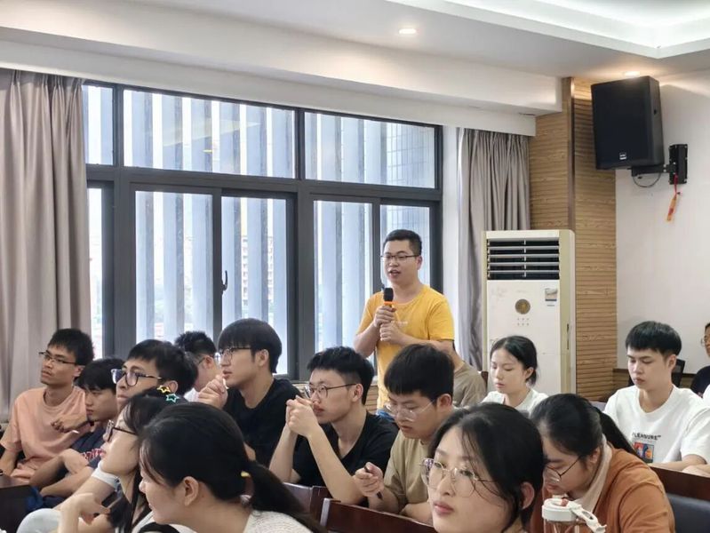 在交流环节,朱丽老师、杨志强老师、李伟辰同学以及王佳卓同学等人针对银行分支机构集聚和企业绿色转型之间的内生性问题、工具变量的选择、企业绿色转型的经济效应和社会效应等问题与滕明明老师进行了深入地探讨。