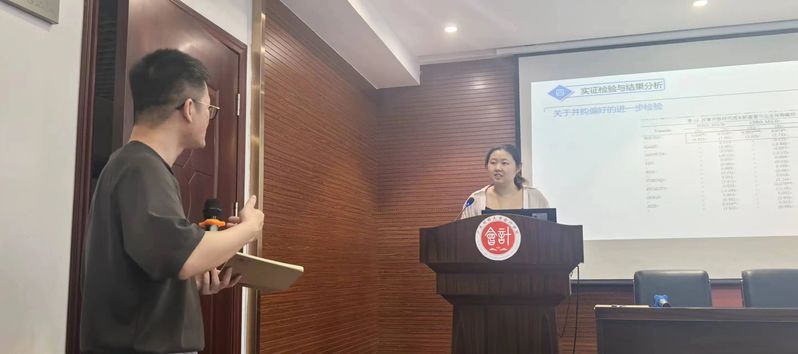 在交流环节,杨志强老师、王晨阳老师和朱红梅同学等人针对选题视角、改革开放周期与计划经济周期叠加的影响、新时期改革开放特点的影响、高管年龄代沟、风险偏好差异、工具变量的选择、研究贡献等问题与李俊仪老师进行了深入地探讨。